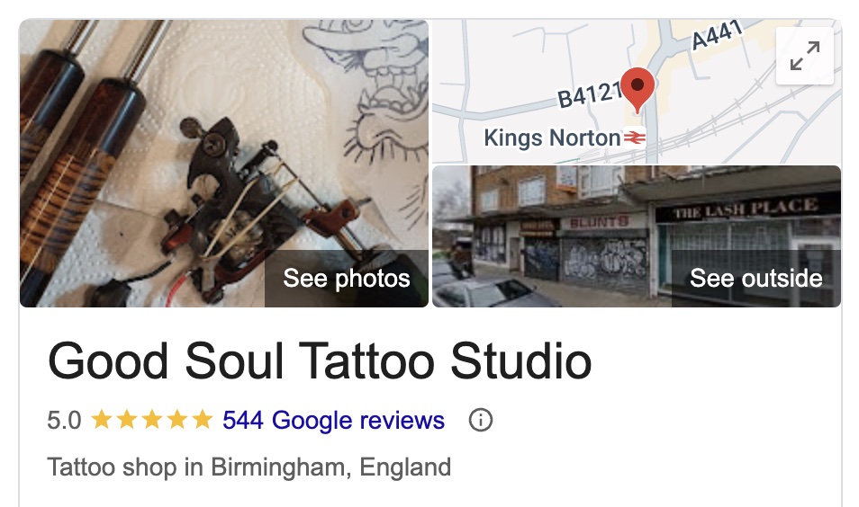 Conveniently located in next door to Kings Norton Train Station, GoodSoulTattooStudio is easily accessible from Birmingham City Centre. This prime spot makes it a top pick for anyone searching for tattoo shops near me in Birmingham. With various social sites online booking, allowing you to contact for consultations or sessions with ease.